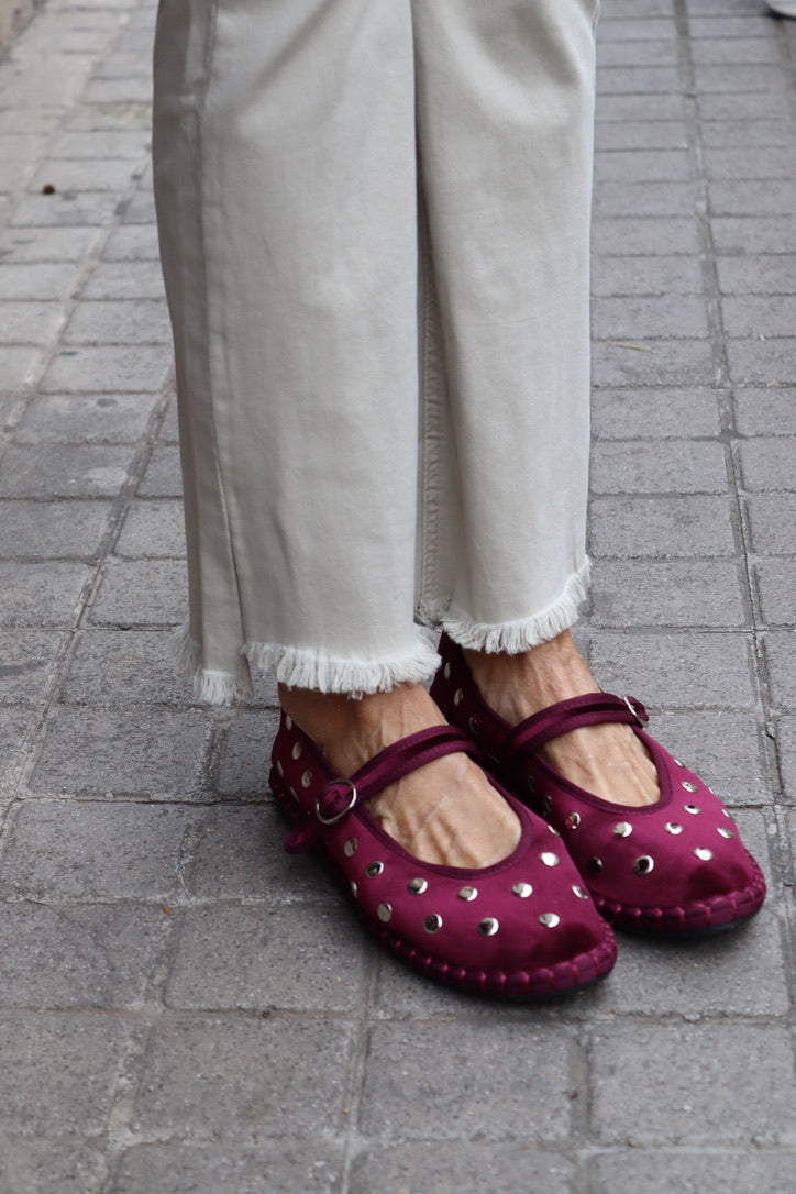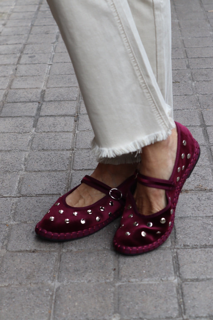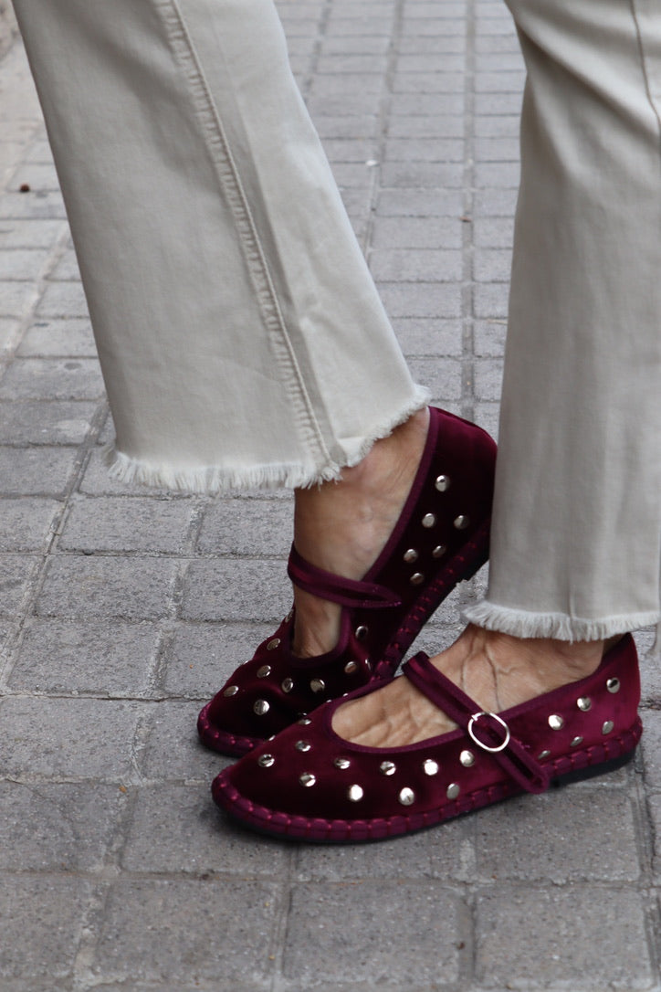 Manoletina terciopelo granate con tachuelas plateadas